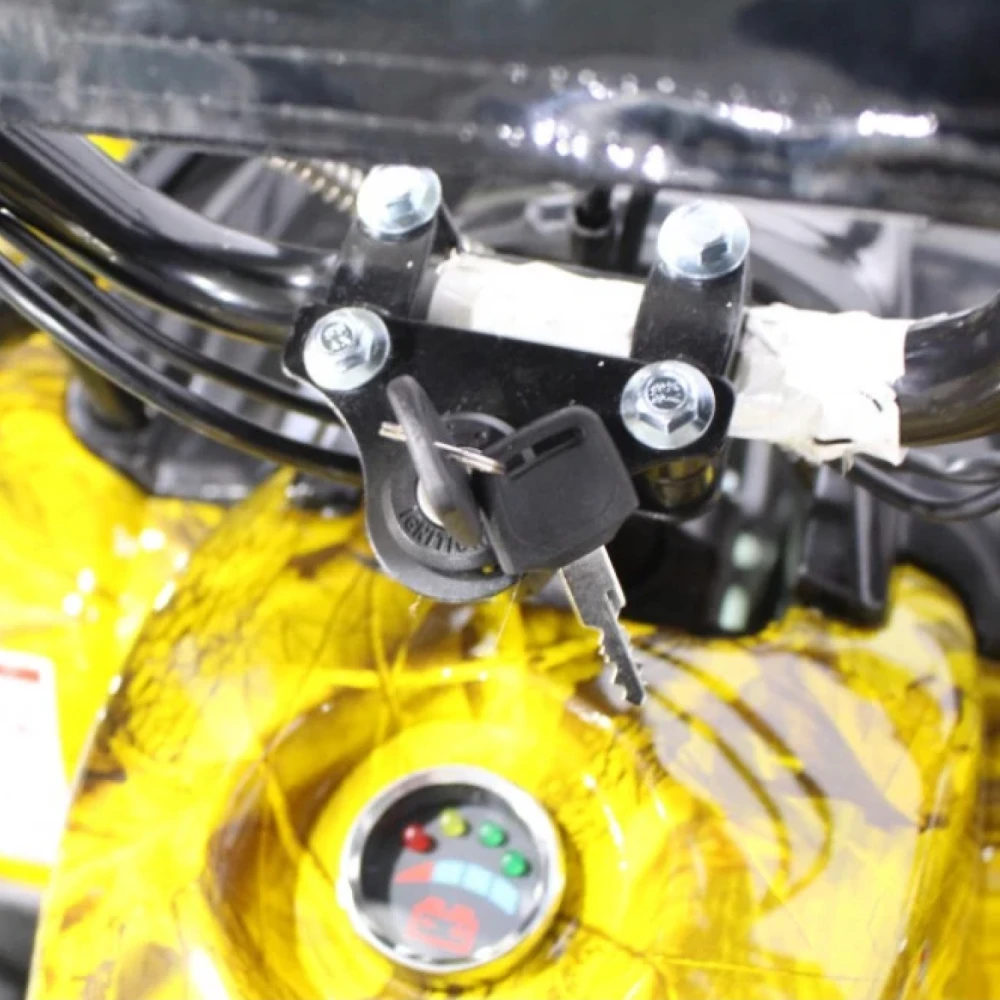 Данный квадрик обладает пониженной передачей, барабанными передними тормозами, а сзади - ножным дисковым гидравлическим тормозом. У него тихий и мягкий ход из-за отсутствия цепной передачи и наличия дифференциала.
