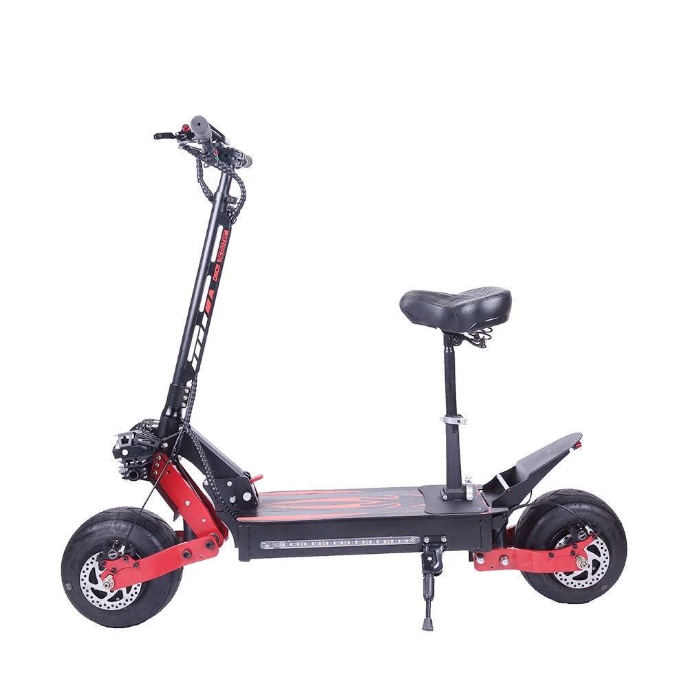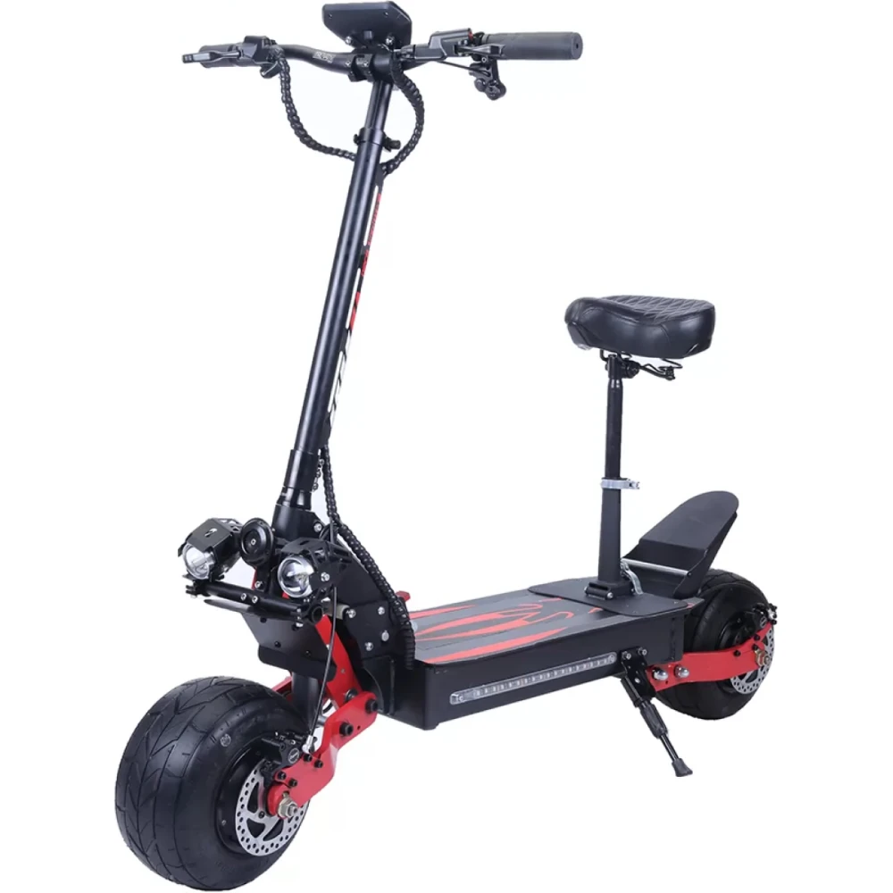 Вес оправдывают мощные 10 дюймовые шины, которые позволяют без трудности преодолевать препятствия. Мощность мотор колеса: 2400 Вт. С такой моделью вы можете спускаться с лестниц, спусков и кататься по неровным поверхностям, грязи, песке и т.д. Аккумулятор 60 В, 26 Ач. Время зарядки от 3-13 часов. Самокат разгоняется до 70 км/ч. В самокате установлен лучший двойной гидравлический дисковой тормоз, который обеспечивает надежное и плавное торможение. Пробег на одном заряде составляет до 60 км, что позволяет ему проезжать длинные дистанции без проблем. Яркая подсветка защитит вас на дороге. Бортовой компьютер с регулируемыми 4 режимами скорости установлен на руль. Продавцы нашего магазина рекомендуют приобрести аксессуары для повышения вашей безопасности. Ведь на таком самокате можно ездить экстремально и не ограничиваться в возможностях.
