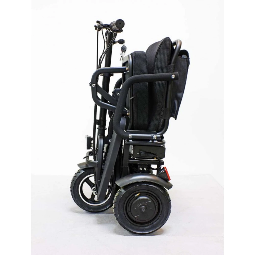 Водительское сидение широкое, имеет специальное воздухопроницаемое покрытие, позволяет длительное время находится в дороге. Техника представлена складной конструкцией, дает возможность легко транспортировать и брать с собой в путешествие. Мощность надежного двигателя 700 Вт позволяет развивать максимальную скорость 25 км/час за короткий период. Заряда емкого аккумулятора достаточно для прохождения 20 км пути без подзаряда. Современная технология изготовления батареи позволяет быстро заряжать, рассчитана на 1000 циклов заряда/разряда.