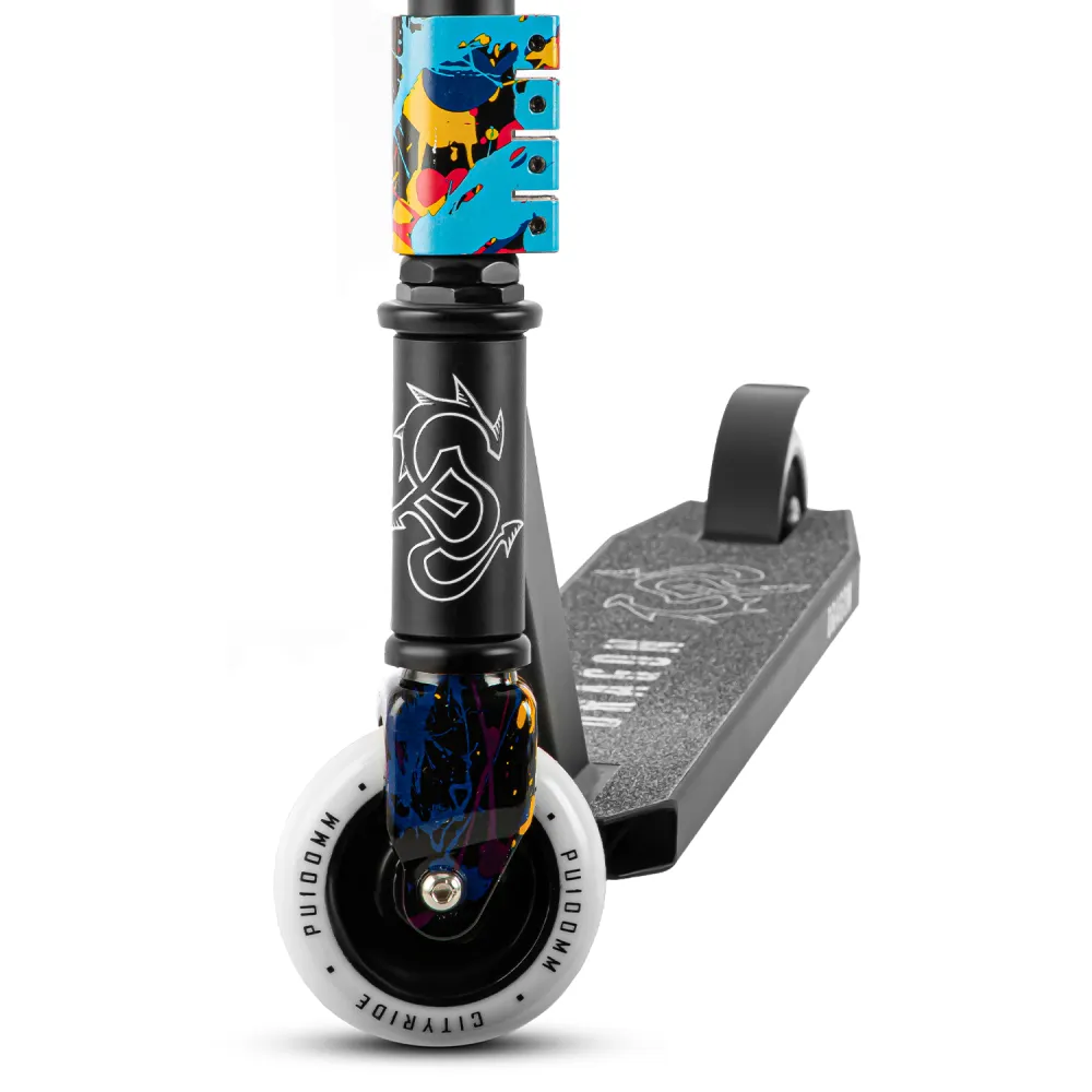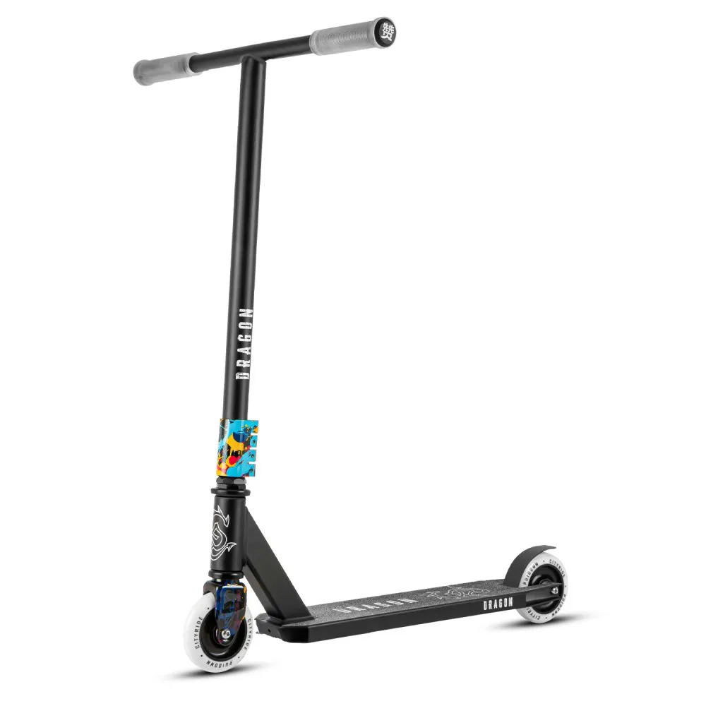 Трюковой самокат CITYRIDE DRAGON черный – крутая техника в современном дизайне понравилась продвинутым трюкачам и начинающим пользователям. Технически самокат изготовлен качественно. Выдерживает нагрузку взрослого пользователя и подростка весом до 100 кг. Привлекательный дизайн сделал технику заметной, подчеркнул ее эксклюзивность.