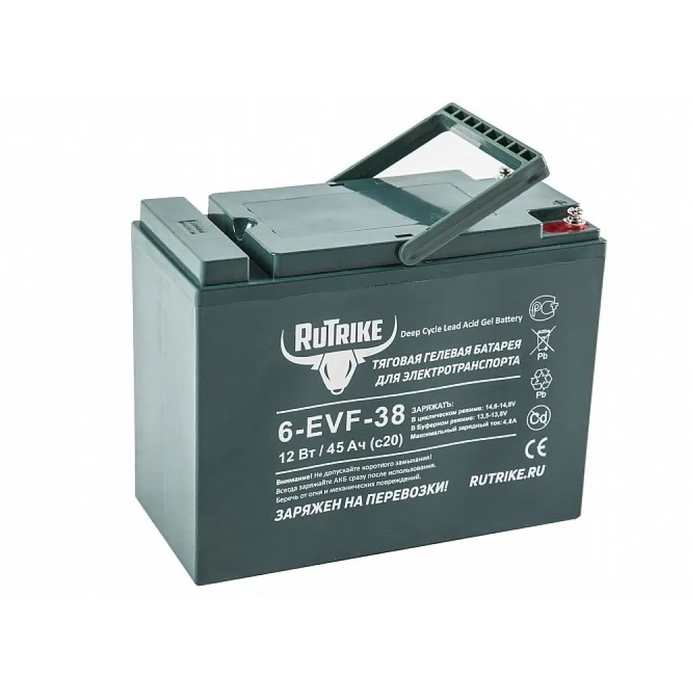 Тяговый свинцово-кислотный аккумулятор RuTrike 6-EVF-38 (12V38A/H C3) – востребованная на отечественном рынке батарея. Представлена компактными эргономичными формами, удобна в транспортировке. Купить товар по приемлемой стоимости, воспользоваться бесплатной консультацией, получить гарантию производителя (12мес) предлагает наш интернет-магазин.